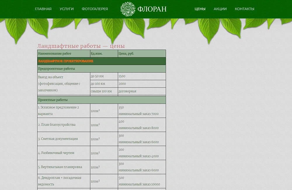 - Проанализирована ниша сайтов ландшафтного дизайна